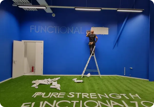 Absolutely. We create tailor-made solutions, from glass wall graphics in offices to large-scale gym interiors and illuminated signs. Every project is customised to your brand and space.